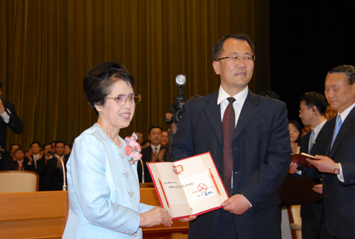 李东升院长代表我校向池田香峰子女士颁授藏宝阁精选资料大全998终身教授证书