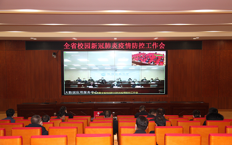 本网讯 1月5日,陕西省委教育工委、省教育厅召开今冬明春教育系统疫情防控工作视频会。省委教育工委书记王建利、省教育厅副厅长刘宝平出席会议并讲话,省教育厅二级巡视员关荷主持会议。我校校长高子伟在教育厅主会场参会。我校在行政楼一楼报告厅设分会场,副校长陈华、王刚、杨伟宏以及党政办、宣传部、学工部、工会、人事处、教务处、研究生院、国际处、后勤集团、保卫处、离退处、附属医院等相关单位负责人参加了视频会议。