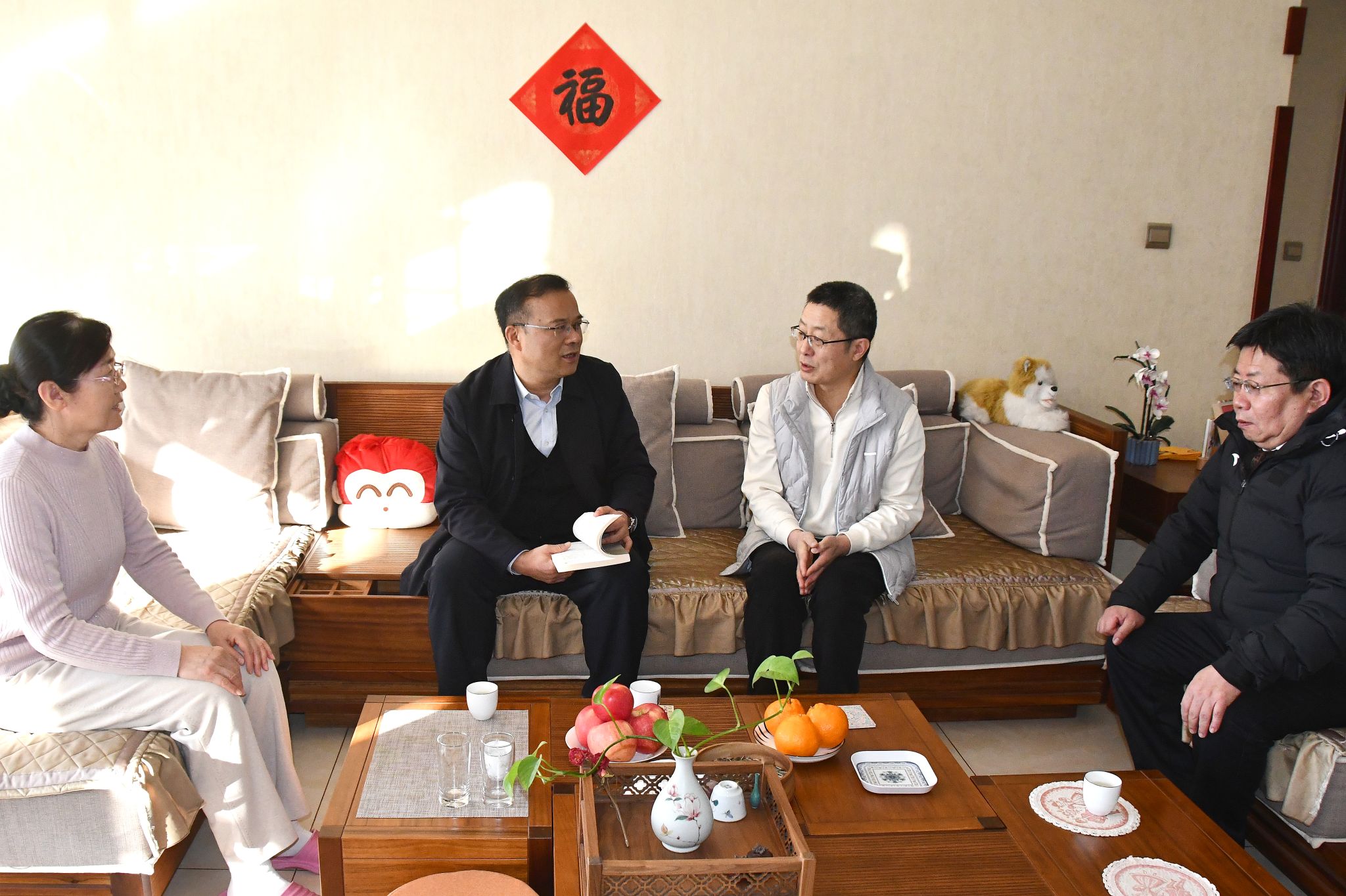 走访慰问期间,校领导与各位老同志、教师代表亲切交流。高子伟和奚家米专程看望了申沛昌等老干部,向他们介绍了学校过去一年在党建引领、人才培养、学科建设、科研创新、社会服务及改善办学条件等方面取得的积极进展,衷心感谢老同志们长期以来对学校发展的关心与支持。围绕学校下一阶段重点任务,校领导认真听取了老同志们关于深化改革、推进高质量发展的意见建议。老同志们对学校一年来取得的成绩给予高度评价,并表示将继续全力支持学校各项工作,为事业发展贡献力量。校领导叮嘱相关职能部门负责人,要持续增强服务意识,提升保障水平,用心用情帮助老同志解决实际困难,积极营造尊老敬老、温馨和谐的校园氛围,让老同志们安享晚年、共享学校发展成果。