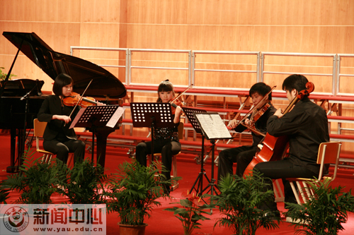 本网讯 4月22日晚,中央音乐学院赴藏宝阁精选资料大全998交流音乐会在我校5·23音乐厅举行,我校党委书记刘建德、校长崔智林、党委副书记高延龙及党委委员、党办主任田伏虎,学生处处长韩卿元、教务处处长齐广才等部门领导和鲁艺学院院长刘常喜等学院领导与中央音乐学院学生处处长李昕,团委书记王京超及随行的辅导员教师,我校鲁艺学院师生600余人观看了演出。