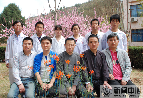 一曲《山丹丹开花红艳艳》唱红了大江南北,唱出了革命志士为人民的情怀,更唱出了革命队伍和人民的鱼水情。山丹丹在延安红色文化中象征着豪迈和似火的热情,象征着可以燎原的革命星火,它的花色纯正而鲜艳,不仅是一种植物,更是人们心中对延安革命的一个象征。过去,我们只能在七八月份才能见到山丹丹开花的景象。近年来,随着自然环境出现的新变化,山丹丹花已濒临灭绝,为了拯救这一花种,在延安市园林处的支持下,我校生命科学学院王延峰博士带领陕北环境资源生物技术研发团队,对延安地区山丹丹的分布、繁殖体系、生长机理、花期调控等进行了不懈探索,利用分子发育调控手段,结合现代花卉无土栽培生产工艺,实现了山丹丹花的反季节开花,并有望实现山丹丹的四季开花。我校生命科学学院陕北环境资源生物技术研发团队成员包括教师贺晓龙、张向前、董晓璞、王晓涧,以及学生杨宗保、郭丹丹、谢银春、王鹏、冯旭和田鹏飞。