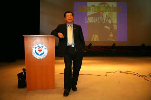 本网讯 6月14日上午,著名美籍华裔刑事鉴识专家李昌钰博士在我校大礼堂,为我校师生作了一场题为《法律与人生》的学术报告。我校副校长王延奇和政法学院师生代表及延安市公检法司干警一千余人聆听了李博士的报告。