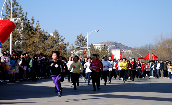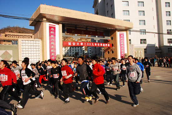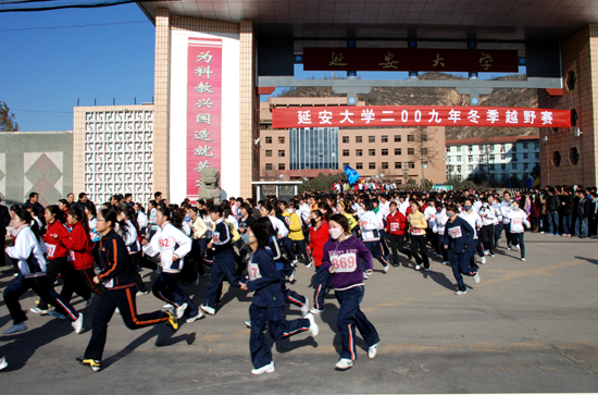 本网讯 今天下午,一年一度的我校冬季越野赛在逸夫楼广场两侧发枪,来自全校16个学院的997名选手分为男、女两个组别参加了比赛。越野赛起点为校本部逸夫楼广场两侧,男子组沿枣园路至张思德为人民服务宣讲台处折返,全程约10000米;女子组沿枣园路至枣园旧居前100米处折返,全程约5000米,终点为校田径场。