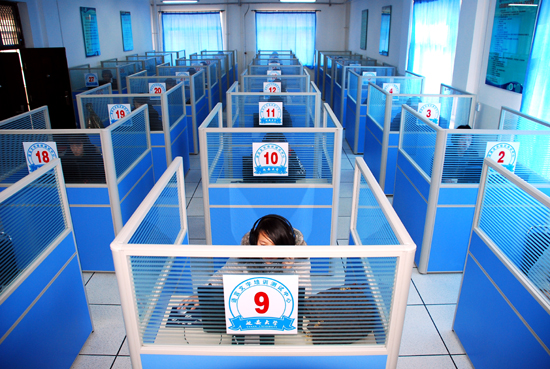 本网讯 日前,我校国家普通话水平计算机辅助测试机房经过公开招标已建成并通过验收。新建成的国家普通话水平计算机辅助测试机房位于玉章楼8楼,面积约130平米,机房配备30台考试机,1台监考机,一次可安排30人同时测试,每15分钟测试一批。测试分读单音节词语、读多音节词语、朗读短文和命题说话4项内容。所有测试过程都即时录音。在测试结束时,其中前三项测试可由计算机当场计算出应试人的测试成绩,命题说话部分将再经过普通话测试员的复听审核,最终得出应试人的测试成绩。与以往人工测试相比,普通话水平计算机辅助测试形式灵活,操作简便,栏目清晰,测评更加公平、公正。