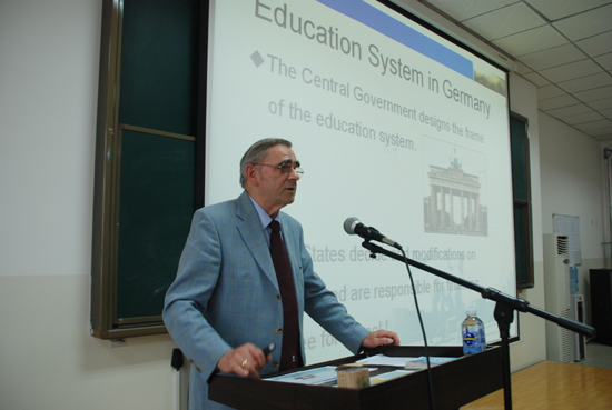 本网讯 11月26日至2 7日,应我校邀请,中国工程院院士、长安大学教授李佩成和德国图宾根大学K·巴克教授一行到我校访问,并做客我校研究生学术论坛,分别为我校研究生作了题为《怎样做好科学研究》和《德国的高等教育与人才培养》的学术报告。