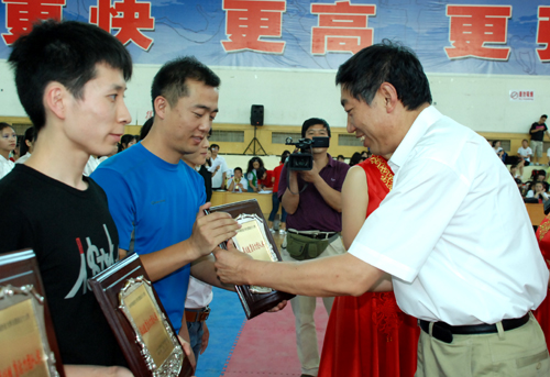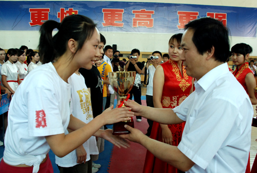 闭幕式上,大会总裁判长匡小红和陕西省大学生体育协会办公室张黎分别宣读了大学生健康活力大赛团体成绩、最佳健康活力团队奖、最佳成套编排奖、最佳音乐奖、最佳团队组织奖、最佳组织奖和优秀裁判员、优秀教练员、最佳青春风采奖、明星运动员的获奖名单。团体赛普通院校组和体育院校组的前三名分别被西安美术学院、西安欧亚学院、西安科技大学和西安体育学院、长安大学、藏宝阁精选资料大全998获得;最佳健康活力团队奖的前三名分别被西北农林科技大学、西安交通大学、西安电子科技大学获得;最佳团队组织奖的前三名被西安财经学院、商洛学院和陕西理工学院获得;西安电子科技大学代表队获得最佳音乐制作奖;我校代表队获得最佳成套编排奖和最佳组织奖;闫晓、孙萌、肖涛、王辉、苏青芳被评为优秀裁判员;范飞、任梦瑞、李璇、卢亮、燕超获得最佳青春风采奖。大赛组委会执行主任、我校副校长胡俊生,大赛组委会副主任、我校教务处处长齐广才,大赛总裁判长匡小红、副总裁判长陈西玲,大赛组委会委员、我校体育学院院长魏锦龙和陕西省大学生体育协会办公室张黎同志分别为获奖的团体和个人颁了奖。