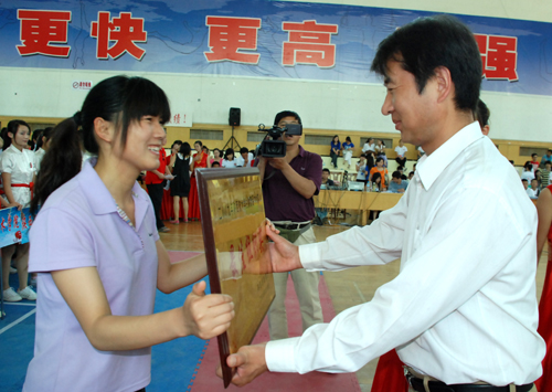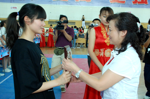张黎为获得最佳组织奖的我校代表队颁奖