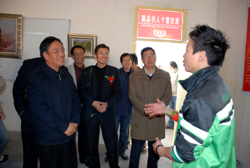 校党委书记刘建德,党委委员、党办主任田伏虎也观看了画展,并与张治富进行了亲切交流。刘书记对张治富在学生期间举办这样的画展表示赞赏,希望作者在艺术手法和风格上进一步创新,努力探索,形成自己的特色。