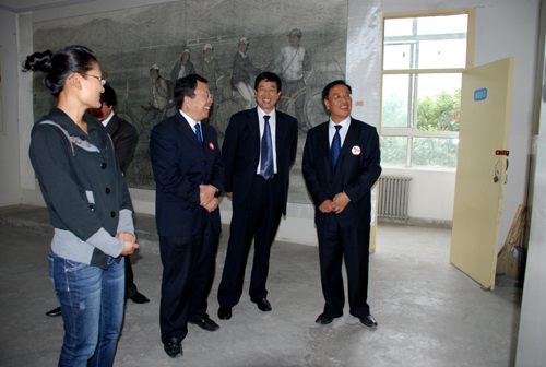 本网讯 9月24日上午,刘建德书记由中国书法家协会会员、延安书法家协会副主席、我校组织部部长张建林的陪同下,分别来到我校教职工书画展和鲁艺学院师生书画展现场,认真观看了书画展,并询问了有关情况,与在场的部分师生和书画爱好者进行了交谈。