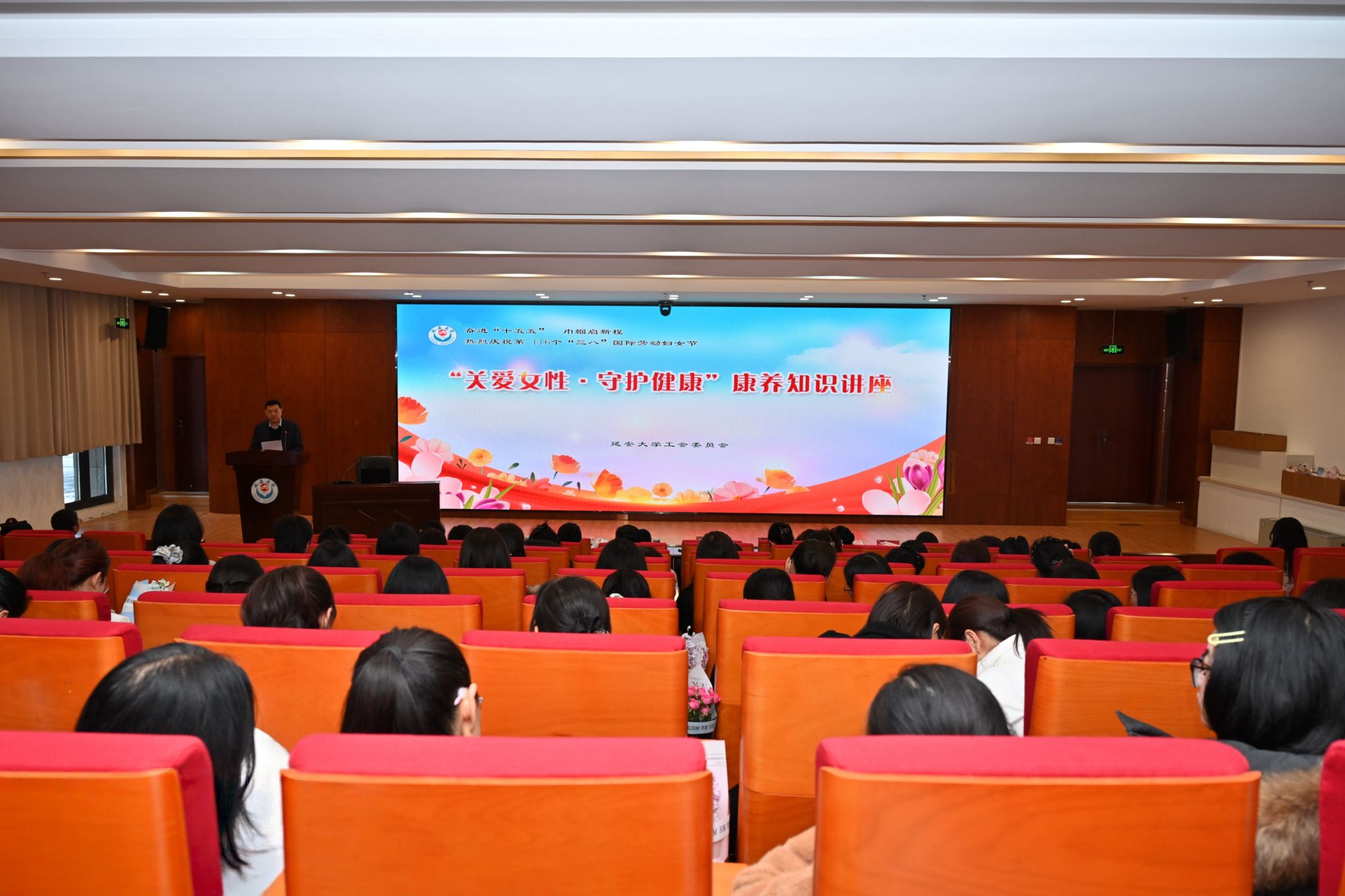 本网讯 为纪念第116个“三八”国际劳动妇女节,团结引领全校女教职工奋进“十五五”新征程,3月3日下午,由校工会主办的“关爱女性·守护健康”主题健康讲座在新城校区行政楼一楼报告厅举行,正式拉开“奋进‘十五五’ 巾帼启新程”纪念“三八”国际劳动妇女节主题系列活动的序幕。来自各行政部门、各学院的女教职工代表及女学生代表近百人参加活动。校工会主席杨曦东出席活动并致辞,校工会副主席张永东主持活动。