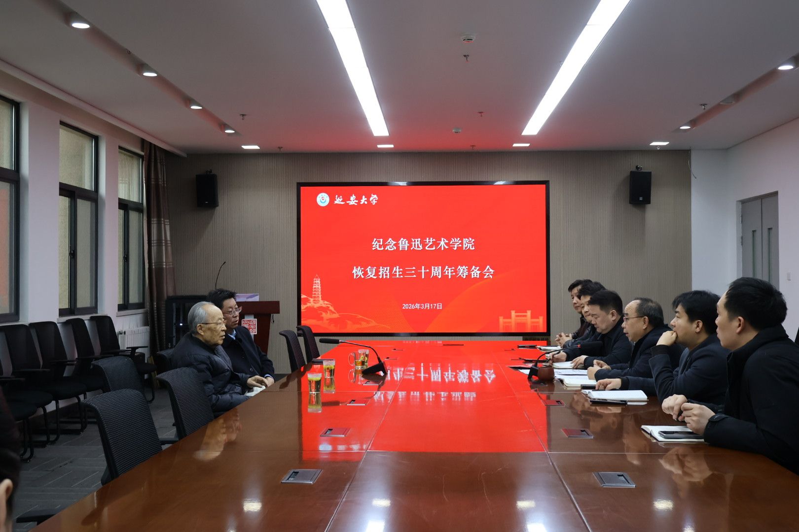 会上,李延俊代表学院对申沛昌老校长的到来表示热烈欢迎和崇高敬意,并详细介绍了申沛昌同志长期以来关心支持鲁艺建设发展、深耕延安红色教育事业的重要贡献。随后,学院党委书记董振文全面汇报了鲁艺自1996年恢复招生以来,在学科建设、人才培养、艺术实践、师资队伍等方面接续奋斗、守正创新的坚实足迹。