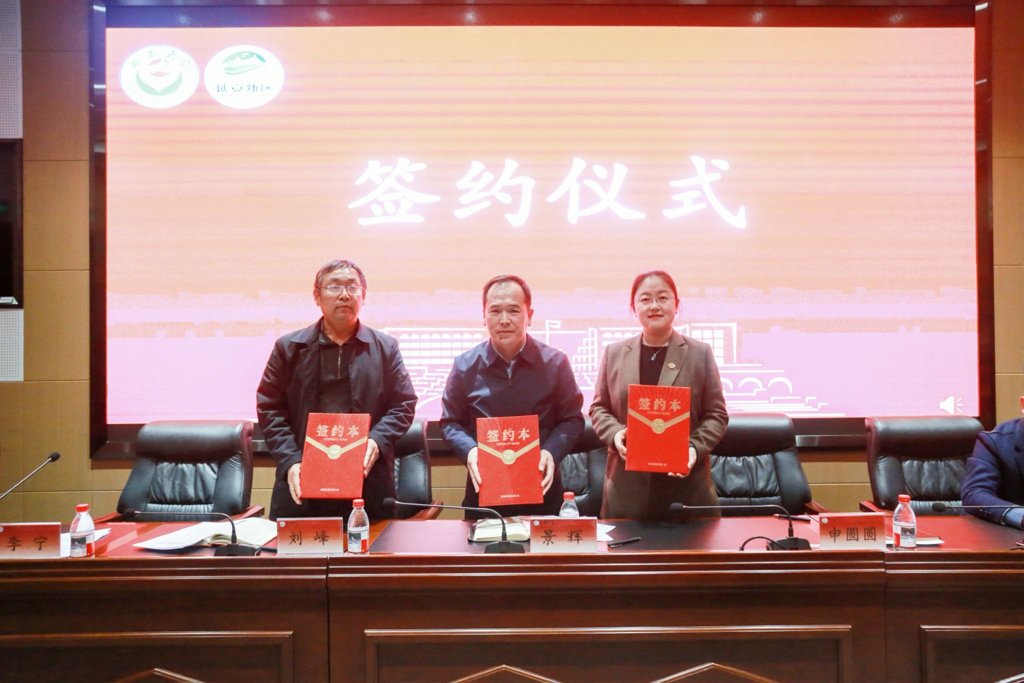 随后,三方代表现场签署校地长期合作协议,景辉为学生志愿服务队授旗。