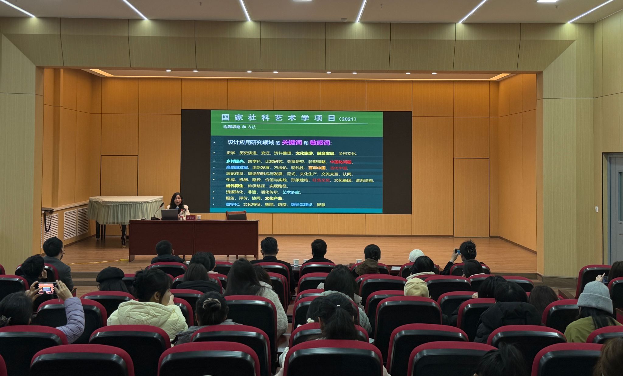 为进一步提高鲁艺学院师生的科研能力与学术水平,提升学院高质量课题申报效果,引导研究生明确学术规划与职业发展方向,3月14日下午,学院邀请湖南工业大学包装设计艺术学院副院长、博士生导师施爱芹教授,在音乐楼101实训室作了题为“艺术类教师的学术生涯规划与高级别课题申报”的专题报告。学院教师、研究生共计160余人聆听报告会,报告会由副院长李辉主持。