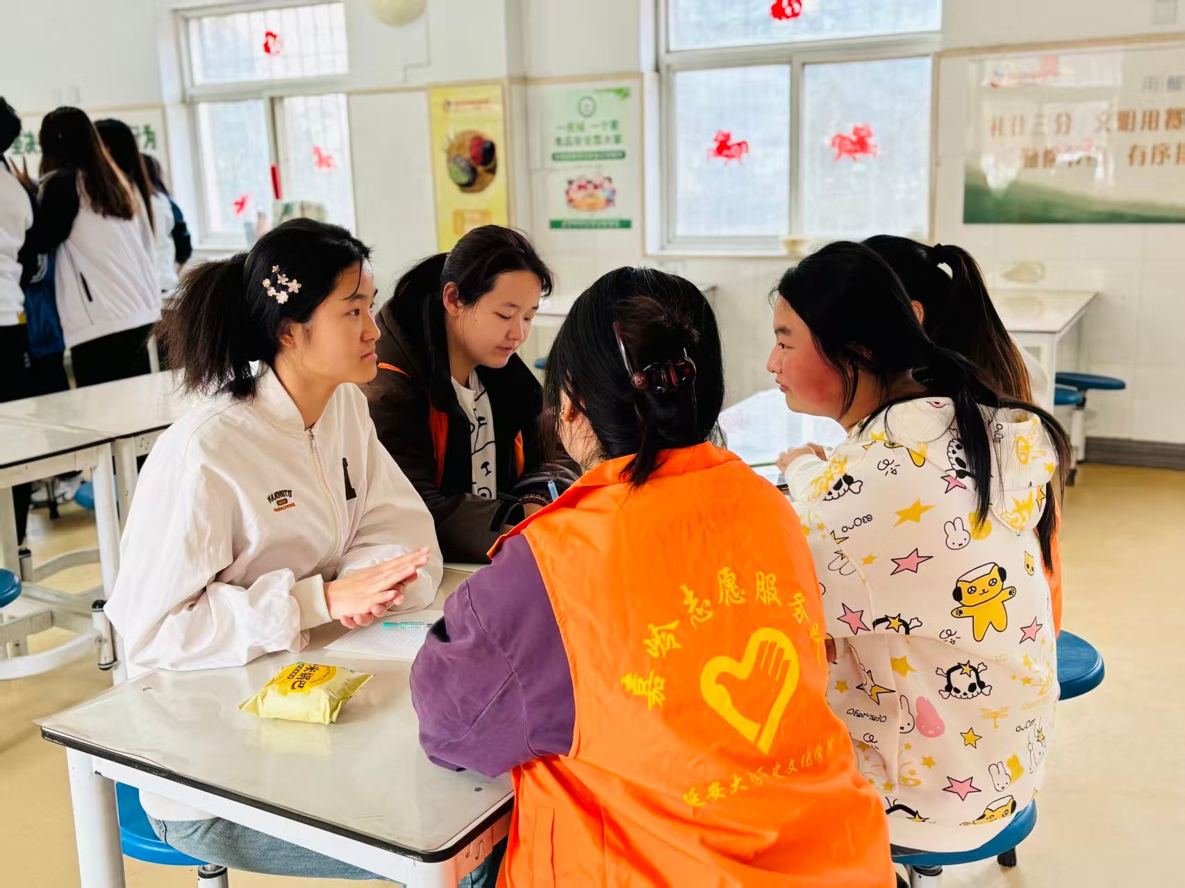 以德为先,服务中涵养家国情怀。服务队始终将德育贯穿志愿实践全过程。在榆林赵家峁村乡村振兴调研中,队员与村干部深入座谈,感悟乡村改革与文旅发展的奋斗历程,在实地走访中增强服务人民的宗旨意识。在反诈宣传活动中,志愿者们以耐心细致的态度传递社会温情,将社会主义核心价值观融入一言一行。
