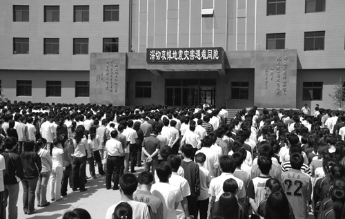 记者:郭 伟 刘 帅 薄晨曦 发布日期:2008年5月20日 本网讯 5月19日至21日是全国哀悼日,为表达我校全体师生员工对四川大地震遇难同胞的深切哀悼,学校下半旗志哀,校内各场所停止一切公共娱乐活动。