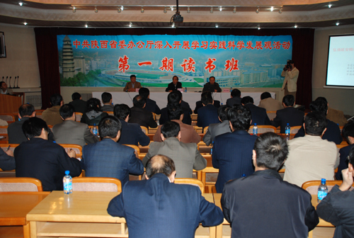 记者:郭 伟 发布日期:2008年10月11日 本网讯 10月10日,中共陕西省委办公厅第一期学习实践科学发展观读书班80余名学员来我校考察学习。