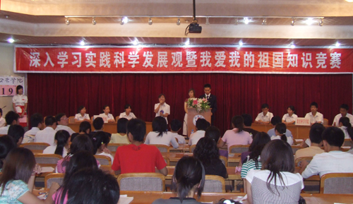 作者:任 静 杜利斌 核稿:杨文军 编辑:校报编辑部 发布日期:2009年6月24日 本网讯 6月21日晚,由教育科学学院与公共管理学院联合举办的深入学习实践科学发展观暨我爱我的祖国知识竞赛在校多功能厅举行。