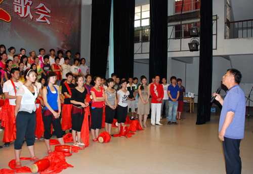 记者:袁广斌 郭 伟 编辑:校报编辑部 发布日期:2009年6月25日 本网讯 6月24日上午,学校在大礼堂召开赴京演出工作动员大会,校领导刘建德、廉振民、高延龙在观看赴京演出的节目之后,对全体演职人员进行了慰问和动员。