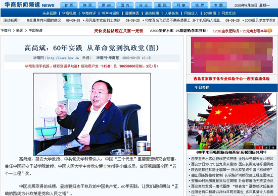 作者:谭虎娃 核稿:高尚斌 编辑:校报编辑部 发布日期:2009年10月6日 本网讯 为了纪念共和国60华诞,9月25日,《华商报》推出《跨越——新中国成立60周年特刊》专题报道,对新中国60年来的政治、经济、法制、民生等重大问题进行了回顾和反思。
