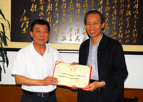 作者:冯晓江 核稿:闫世笙 编发:新闻中心 发布日期:2010年6月8日 本网讯 6月7日下午,我校在教育科学学院会议室举行兼职教授聘任仪式,聘任国家级教学名师、全国优秀教师、陕西师范大学教育技术学科首席专家傅钢善为教育科学学院兼职教授,廉振民校长代表我校向傅钢善教授颁发聘书并宣读了聘任文件。