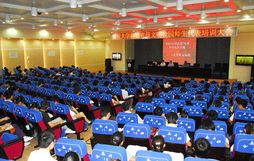 作者:肖金学 核稿:徐 宁 编发:新闻中心 发布日期:2010年7月17日 本网讯 7月15日晚,我校创建省级“文明校园”师生代表培训大会在图书馆10楼报告厅举行,全校400余名师生代表参加了培训。