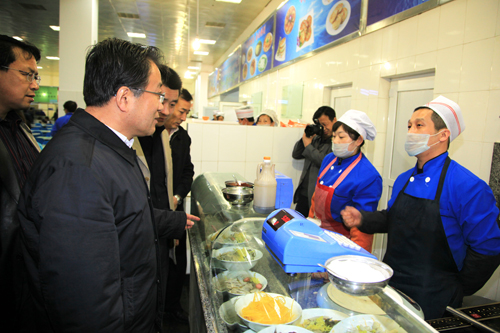 记者:郭 伟 发布日期:2011年3月21日 本网讯 今天中午,崔智林校长在校办主任姚正宽、学生处处长韩卿元、后勤处处长台世强等的陪同下,来到位于雅苑教学生活区的学生第三和第四餐厅,检查了餐厅的食品卫生、就餐环境、饭菜质量、服务工作等情况,并与部分学生共进午餐,并在餐桌上与同学们进行了交流。